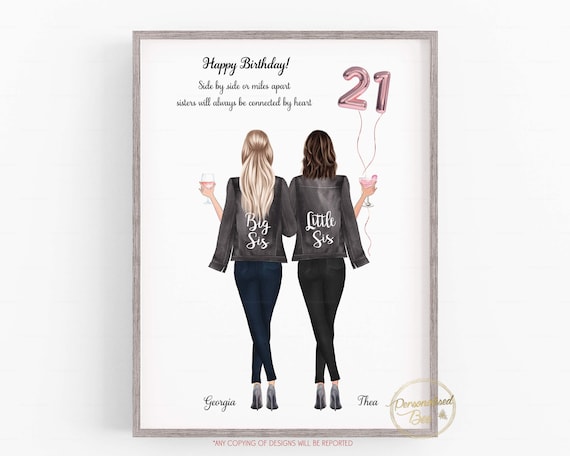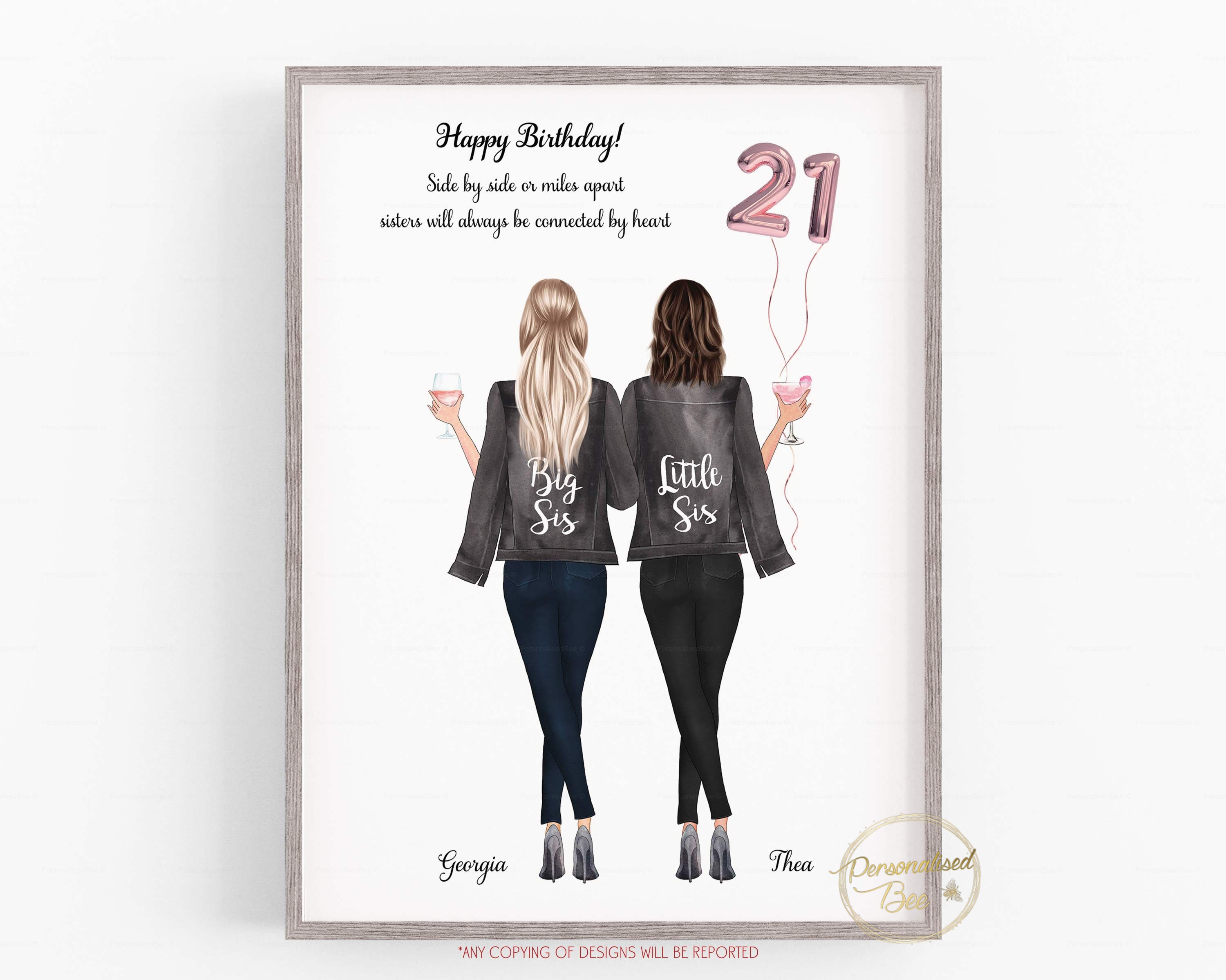 21st Birthday Gift for Sister, Side by Side or Miles Apart Quote
