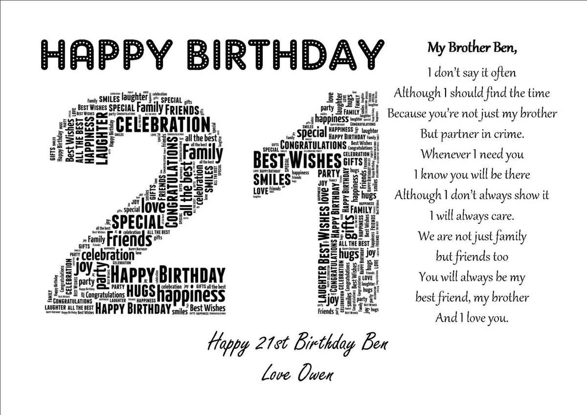 Personalised Special Brother Poem Word Art 21 18 30 21st Birthday