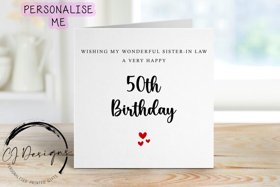 Personalised Sister In law, Sister In law Birthday Card, Happy