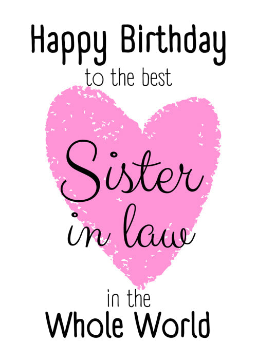 Sister In Law Birthday Card Personalisation Pink Heart & Whole